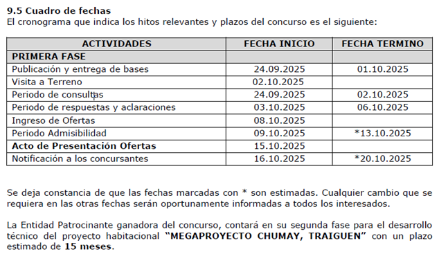 BASES DE CONCURSO PUBLICO DE ENTIDADES PATROCINANTES PARA DESARROLLAR PROYECTO HABITACIONAL EN TERRENO SERVIU, MEGAPROYECTO CHUMAY, COMUNA DE TRAIGUÉN
